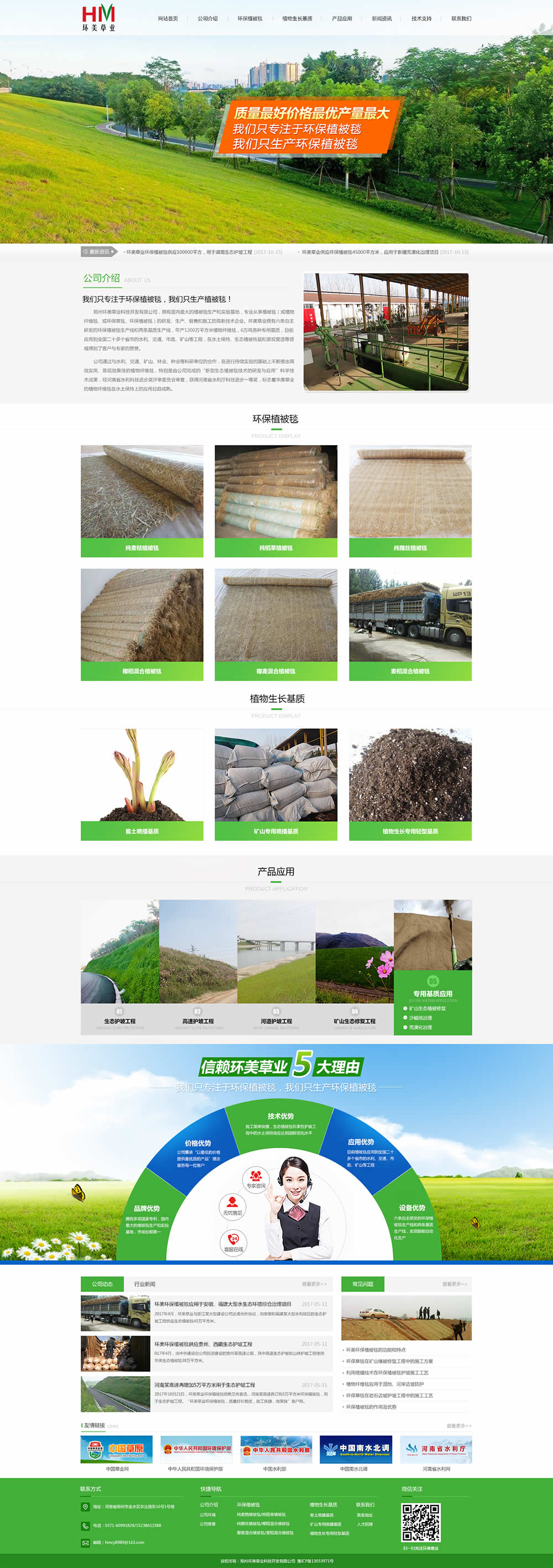 鄭州環美草業科技開發有限公司,擁有國內大的環保植被毯研發和生產基地,擁有國內的客土噴播專用基質生產線,是專業從事環保植被毯(又稱植物纖維毯、環保草毯、環保植被毯、生態毯)和客土噴播專用基質研發、生產和銷售的科技型企業。環美草業一直致力于產品與技術的創新,擁有多項專利生產設備和專利產品,包括六條自主研發的環保植被毯生產線和兩條基質生產線,年產環保植被毯1200萬平方米,年產客土噴播專用基質8萬立方米。目前產品應用到全國二十多個省市的水利、交通、市政、礦山等工程。...