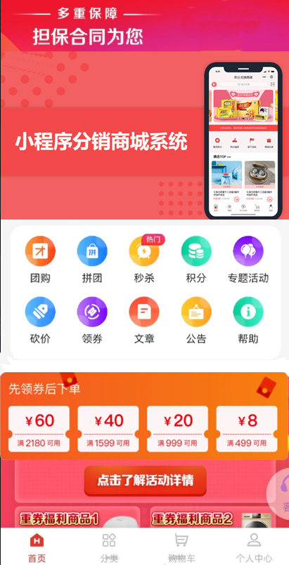 分銷商城系統網站支持開發成小程序,app軟件,分銷功能采用的是thinkphp6框架,獨立系統開發,支持對接商城支付,對應公眾號。標準的獨立系統開發商城,支持購買源碼交付。
